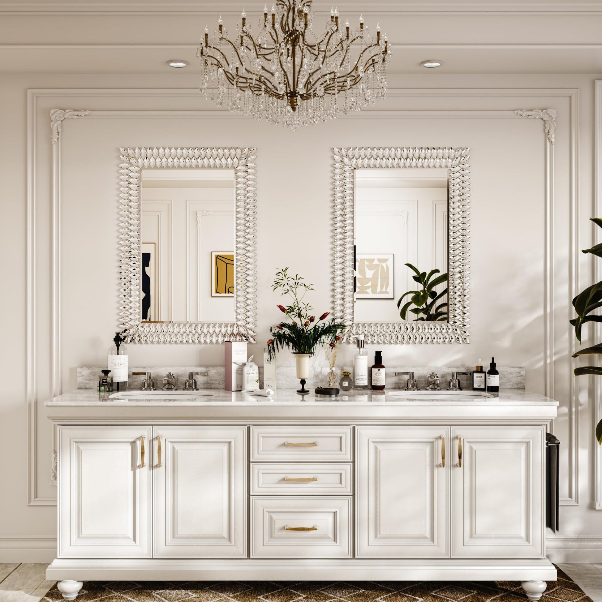 Kelly Miller Spiegel mit Schmucksteinen für die Wand, luxuriöser funkelnder Diamantspiegel, abgeschrägt, moderner Spiegel, Wanddekoration für Badezimmer, Wohnzimmer, Schlafzimmer, Flur