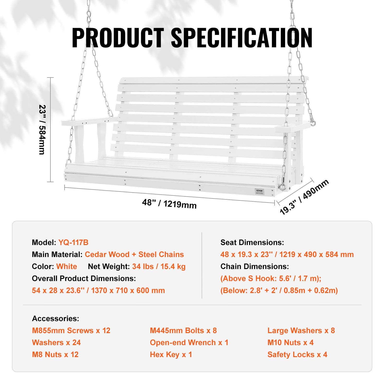 - 【Klassisches Design】Die zeitlose Kombination aus Massivholz und Metallketten verleiht Ihrer Veranda-Schaukel einen Hauch von Retro-Charme. Gesamtabmessungen: 1370 x 710 x 600 mm; Sitzmaße: 48 x 19,3 x 23 Zoll (1219 x 490 x 584 mm), bequem für 2-3 Personen.